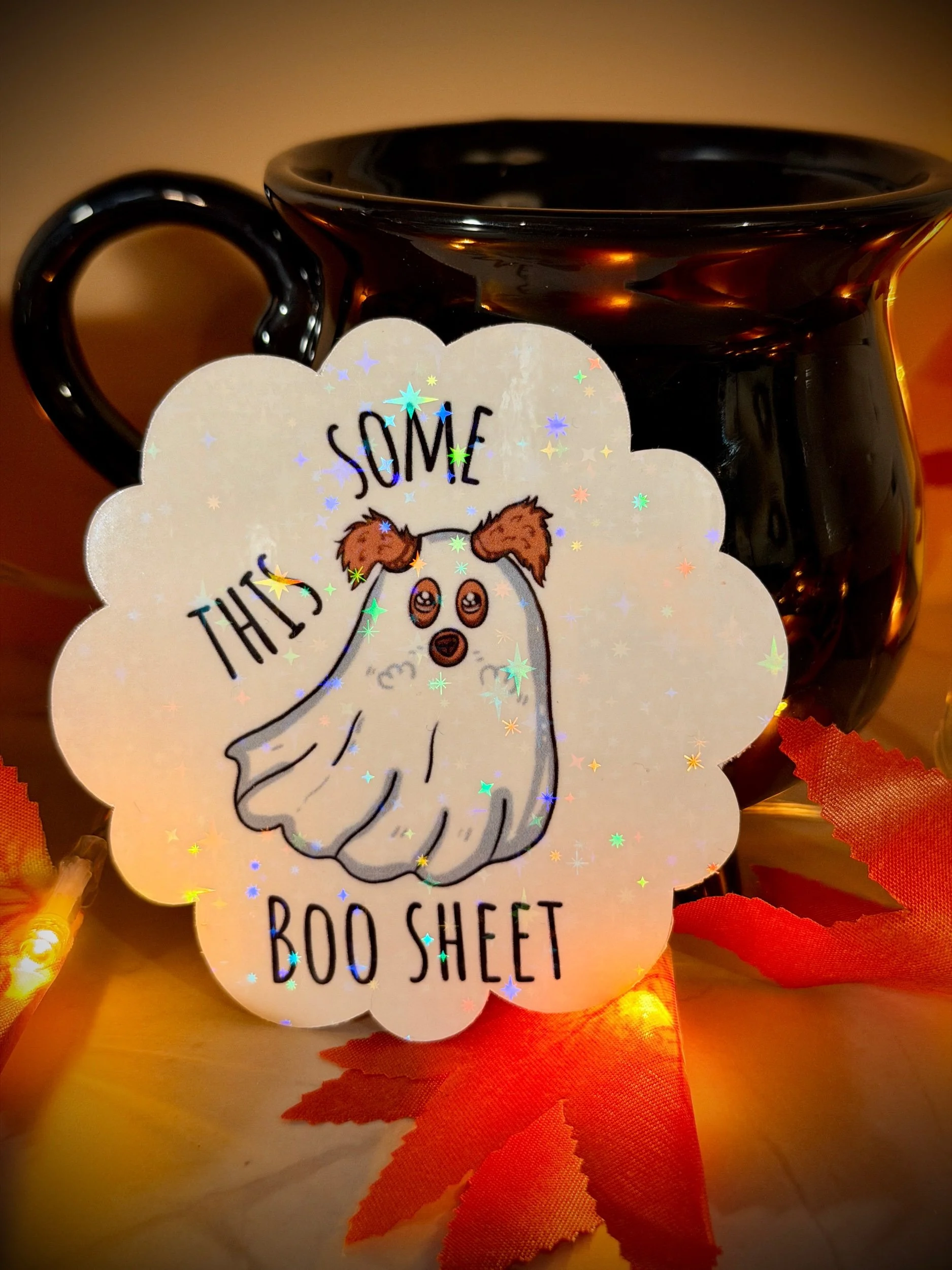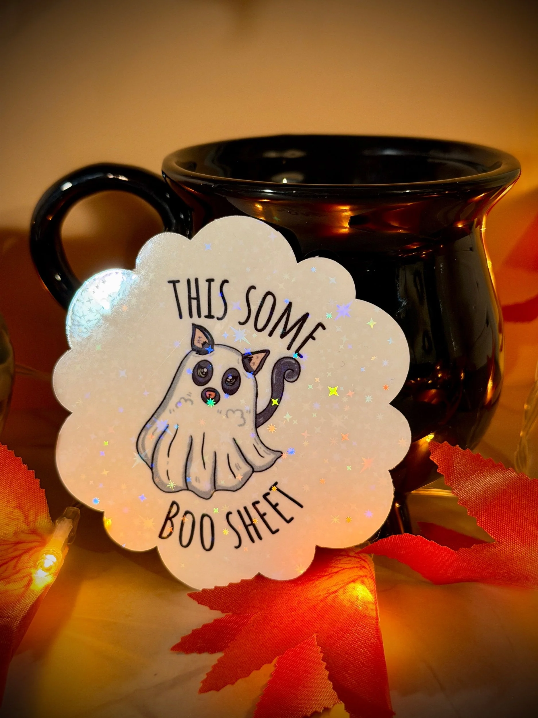 Funny Cat Halloween Sticker – This Some Boo Sheet – Ghost Cat Holographic Vinyl Sticker